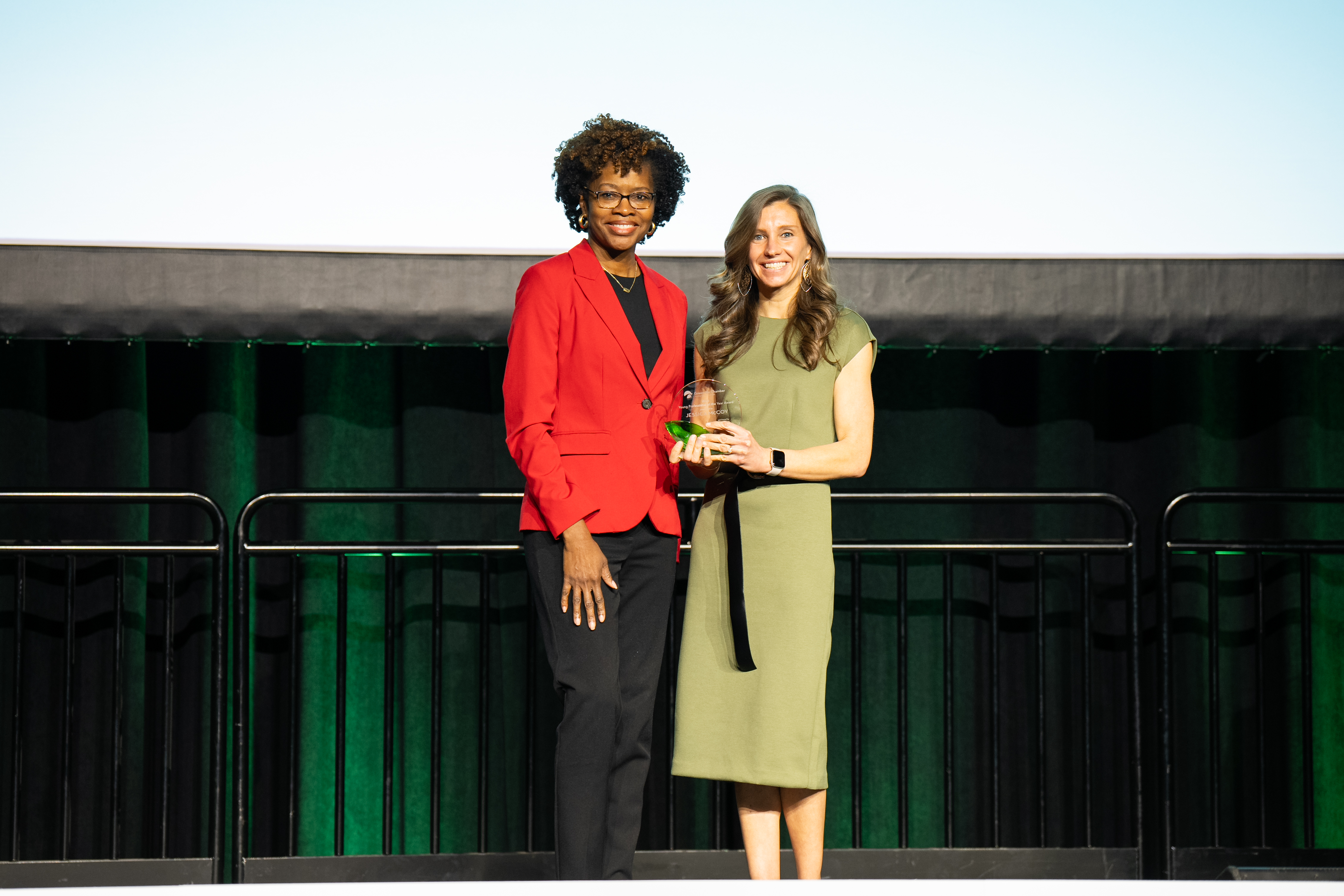 Jessica McCoy received the 2023 Young Professional of the Year award, sponsored by Michelin North America, at the 135th Greenville Chamber Annual Meeting, presented by TD Bank. This award is designed to recognize an individual between the ages of 22 and 39 for their involvement in the community.